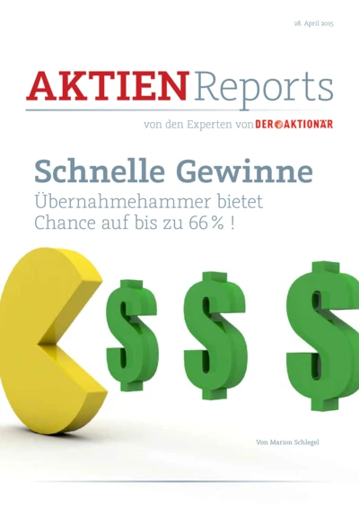 Schnelle 66 Prozent Zwischen 33 und 66 Prozent über dem aktuellen Kurs sollte das Angebot schon liegen – vielleicht sogar höher, so die Schätzungen. Wer sich diese Chance nicht entgehen lassen möchte, sollte möglichst sofort zuschlagen. Denn mit einem Angebot wird fast schon täglich gerechnet. Jedoch gilt im Besonderen was im Allgemeinen für jeden Hot-Stock gilt: Die eigene Order streng limitieren, auf keinen Fall einfach so in den Markt geben. Die Aktie ehr markteng, Vorsicht ist angebracht! Also greifen Sie jetzt zu – kontrolliert! Lesen Sie jetzt den Spezialreport „Schnelle Gewinne – Übernahmehammer bietet Chance auf bis zu 66 Prozent!“ und erfahren Sie, um welches Unternehmen es sich handelt.